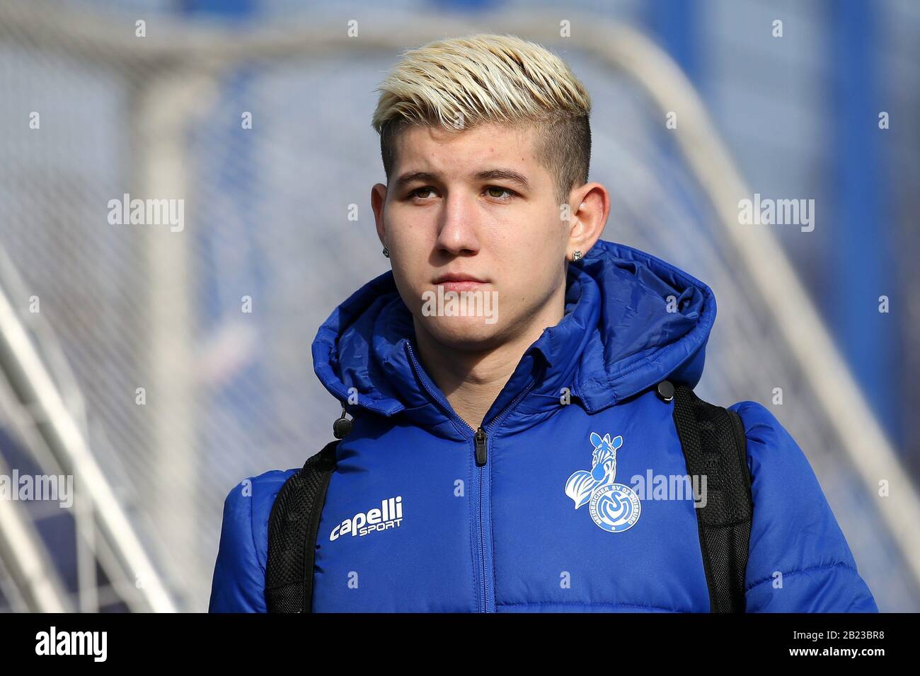 Moritz Stoppelkamp Of Msv Duisburg Poses Witht Eh New Equipment Poses Photo Still Image
